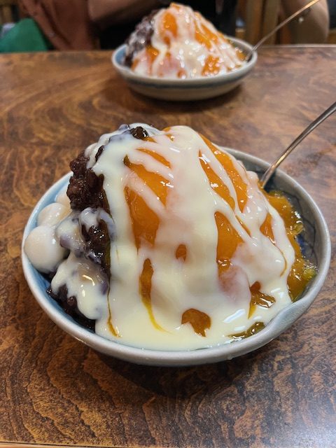 杏ミルク白玉金時という全部盛りみたいなかき氷に決めました。