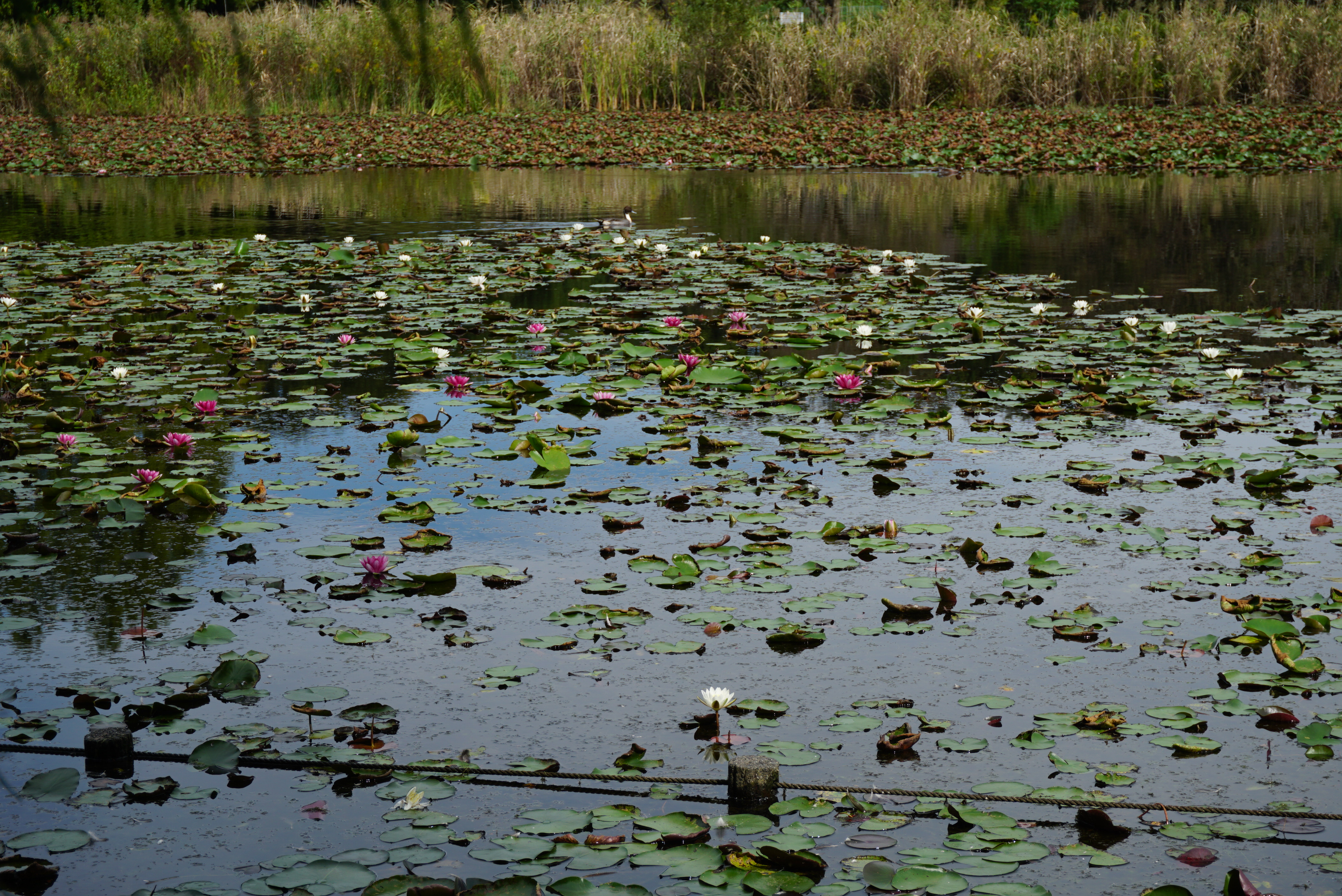 スイレンを見たのは久しぶりですが、池を葉で覆って、そこに花が咲いているのは良いものです。画家のモネがスイレンに魅了されたのも分かる気がします。写真を探してみてください。カモが泳いでいます。