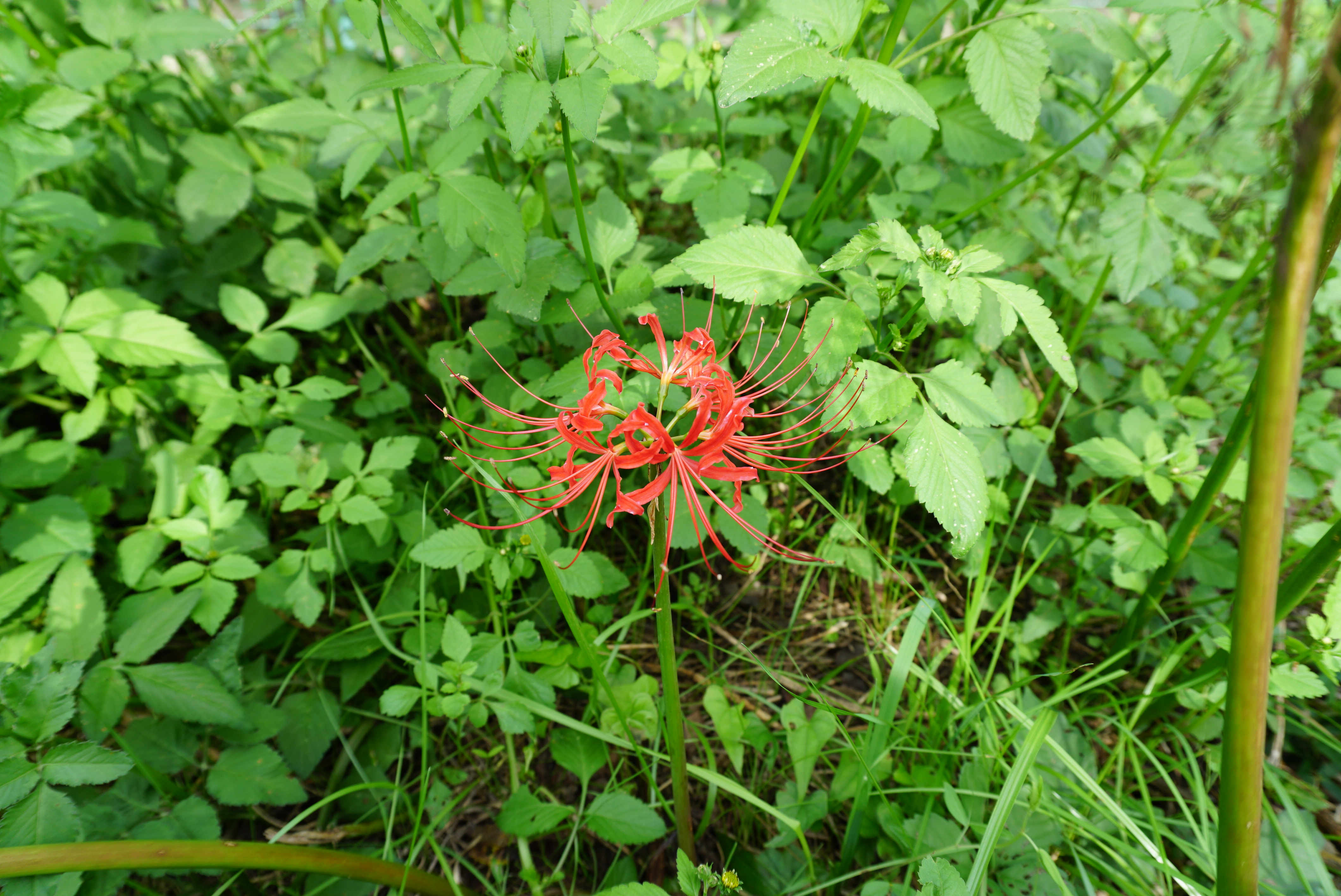 公園内に彼岸花の群生エリアがあるのを聞いたので探してみました。やっとエリアにたどり着けたのですが、彼岸花はほとんど枯れていました。しかし、1本だけ生き残りが咲いていました。今日は運があります。